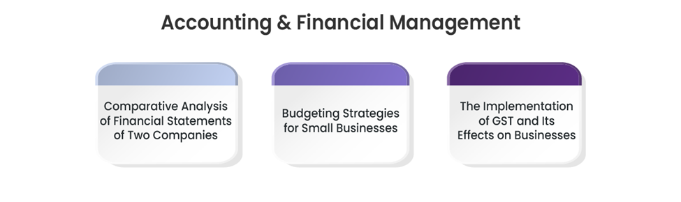 Accounting and financial management are an integral part of any business for profitability, compliance, and financial planning purposes. These projects provide an opportunity for students to develop skills in analysis, problem-solving, and decision-making, preparing them for a career in accounting, auditing, taxation, and corporate finance.