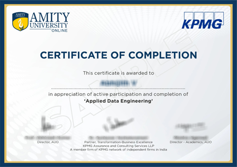 After the completion of Amity Online's Certificate in Applied Data Engineering, you may pursue positions such as: